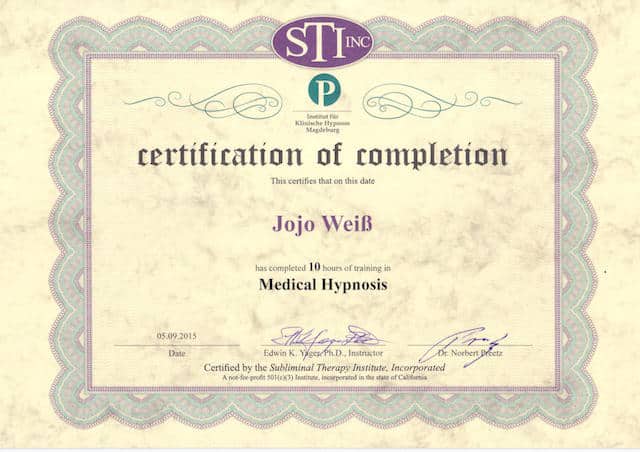 Die meisten Besucher von Joweissco Hypnose Berlin kommen 2-4 mal zur Behandlung, um eine Lösung für ihr Anliegen zu finden. Die umfangreiche Vorbereitung (Telefonat, Anmeldebogen, Videomaterial, Erstgespräch) trägt zu einer effektiven Hypnose-Kurzzeittherapie bei und ermöglicht individuell auf Deine Bedürfnisse einzugehen. Wir arbeiten sowohl ursachen- als auch lösungsorientiert. Joweissco bietet ein weltweit einzigartiges Zahlungsmodell zur Raucherentwöhnung. Du bezahlst die Behandlungskosten nach 90 Tagen rauchfrei. das bedeutet, es gibt für Dich bei dieser Art der Nichtraucherhypnose keinerlei finanziellen Risiko. Neben der Hypnosetherapie kommen EMDR, PEP(prozess- und embodimentfokussierte Psychologie) und die Yager-Therapie zum Einsatz. Auf diese Weise kann eine große Bandbreite der Störungsbilder behandelt werden.